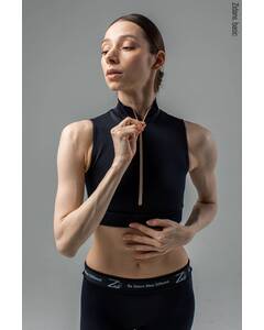 Дизайн.  Черный спортивный кроп топ на молнии. Плотно прилегающий крой ощущается, как вторая кожа, с лёгким эффектом пуш-ап. Молния с контрастным пуллером. Черный закрытый верх купальника. Топ на молнии для танцев.  Материал.  Итальянский бифлекс — эластичный,...