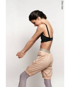 Дизайн.  Бежевые шорты-сауна для танцев. Шорты для разогрева с мягкой брендированной резинкой сверху. Комфортно прилегающая резинка по штанинам, чтобы создать эффект "сауны" и помочь вам продуктивно разогреться. Заниженная линия талии. Разогревочные шорты.  Улучшения в...