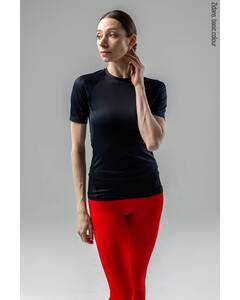 Дизайн.  Женская эластичная футболка анатомичного кроя. Создает плотную, надежную посадку на фигуре. Расположение швов обеспечивает максимальный комфорт при амплитудных движениях рук и торса. Черная женская спортивная обтягивающая футболка. Материал.  Итальянский бифлекс —...