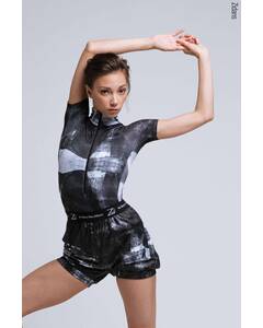 Дизайн.  Шорты-сауна для танцев с принтом. Шорты для разогрева с мягкой брендированной резинкой сверху. Комфортно прилегающая резинка по штанинам, чтобы создать эффект "сауны" и помочь вам продуктивно разогреться. Заниженная линия талии. Разогревочные шорты. Авторский принт...