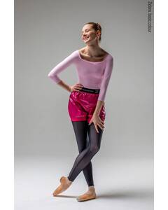 Дизайн.  Розовые шорты-сауна для танцев. Шорты для разогрева цвета фуксия с мягкой брендированной резинкой сверху. Комфортно прилегающая резинка по штанинам, чтобы создать эффект "сауны" и помочь вам продуктивно разогреться. Разогревочные шорты.  Улучшения в модели:...