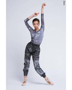 Дизайн.  Разогревающие штаны сауна для танцев, дополнены эластичными манжетами на резинках и собраны на пояс из мягкой брендированнной резинки. Комфортная классическая посадка. Штаны для разогрева с матовым эффектом. Авторский принт "Мазки чернил". Расположение принта на изделиях...