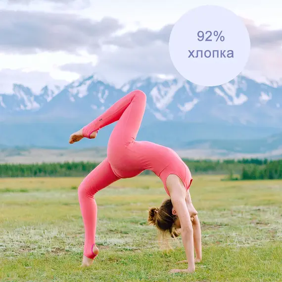 Комбинезон 420 из хлопка для йоги и пилатеса с чашечками. Фуксия