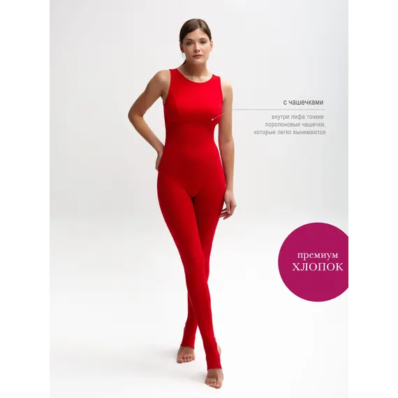 Комбинезон спортивный 428 ASELIM с чашечками. Премиум хлопок красный