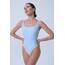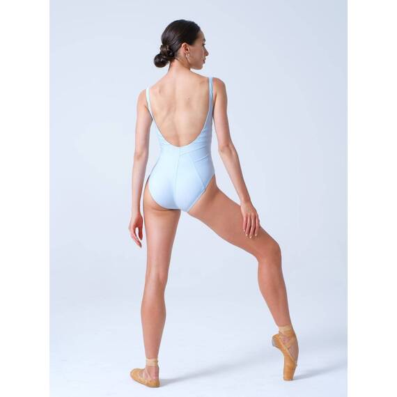 Купальник голубого цвета из эластичного материала с открытой спиной. Комфортная посадка для тренировок и сцены.