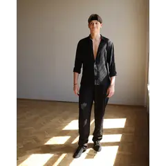 Мужские брюки Primabella для стандарта из костюмной ткани с отстроченными стрелками, шлёвками и застёжкой на крючках. Практичные и удобные для танцев.