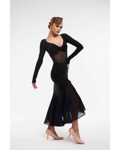 Элегантная юбка для европейской программы с идеальной посадкой, объемным сетчатым воланом и вшитым регилином для стабильной формы и выразительных движений.