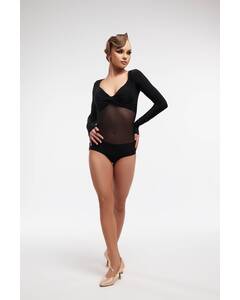 Эффектное боди из плотного трикотажа с сетчатой вставкой, регулируемыми рукавами и встроенными чашками — идеальный выбор для танцев и тренировок.