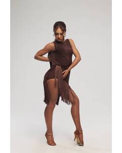 Стильная танцевальная туника с бахромой-лапшой, эффектным вырезом на спине и возможностью носки с поясом или без.