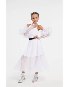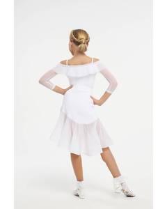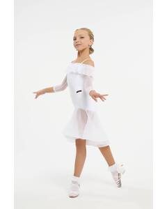 Плотное белое трикотажное платье с вшитым купальником и бахромой. Анатомичный крой, регулируемые бретели и идеальная посадка для латиноамериканских танцев.