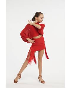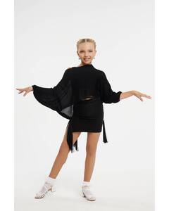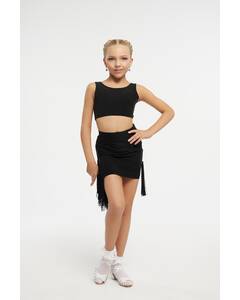Детская мини-юбка для латины PRIMABELLA с бахромой и косым кроем. Эластичная ткань, лёгкость в движении и эффектный внешний вид для выступлений и тренировок