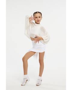 Стильная мини-юбка с вшитыми трусиками и удобным широким поясом. Украшена качественной бахромой, подчёркивающей динамику танца. Идеальна для тренировок и выступлений зимой.