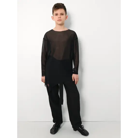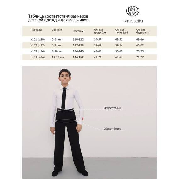 Материал не мнётся, быстро сохнет и сохраняет форму после многократных стирок, что особенно важно для детской танцевальной одежды. Брюки можно подшить под нужную длину для точной посадки.