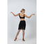 Тренировочная юбка асимметричного кроя с низкой посадкой по линии бедер. V-образный верх с эластичной резинкой обеспечивает комфортную посадку и фиксацию без давления. Конструкция с запахом добавляет свободу движениям, а бахрома подчеркивает динамику в танце. Трикотажное полотно отличается эластичностью и мягкостью, хорошо адаптируется к фигуре и подходит для репетиций, съемок и быстрых перевоплощений. Встроенные трусики повышают комфорт и уверенность при активной работе на паркете