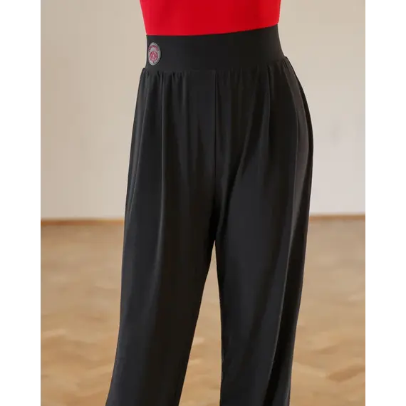 Брюки для латиноамериканской программы Classic Latin с манжетами и широким поясом на талии. Элегантно сидят по фигуре и обеспечивают комфорт даже во время самых интенсивных упражнений. Используются так же для занятий бачатой, сальсой и другими танцевальными стилями, требующие легкость и подвижность ткани и придания скорости движениям танцора. Отлично сочетаются с топами и боди бренда Primabella, с которыми вы так же можете ознакомиться на MarketDance.