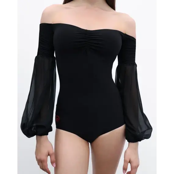 Operto - модель боди с открытыми плечами для европейской программы. Универсально сочетается с юбками и классическими брюками для стандарта.