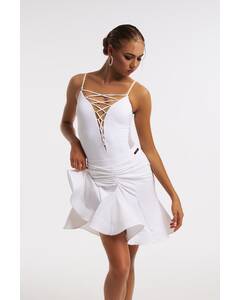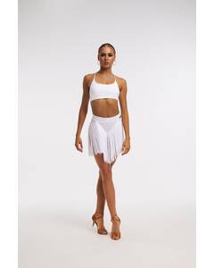 Юбка с драпировкой и закрытым регилином, визуально удлиняющая силуэт. Эластичный пояс и вшитые трусики обеспечивают комфорт и надежную посадку для активных танцев.
