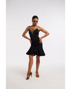 Черная мини-юбка PRIMABELLA для латины с вырезом по ноге и бархатными лампасами. Эластичная ткань, идеальная посадка и комфорт в каждом движении.