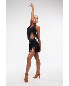 Стильная танцевальная туника с бахромой-лапшой, эффектным вырезом на спине и возможностью носки с поясом или без.