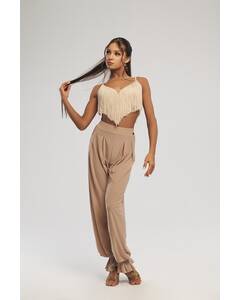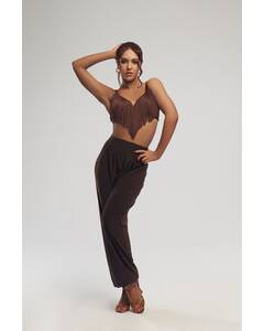 Легкий укороченный топ с регулируемыми бретелями и вшитыми чашками. Бахрома-лапша по корсетным линиям подчеркивает силуэт и добавляет движения. Идеален для тренировок и танцев в жаркую погоду.