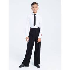 Черные бальные брюки для мальчика PRIMABELLA с классическим прямым силуэтом и стрелками. Удобные, износостойкие, идеально подходят для тренировок и соревнований по спортивным бальным танцам.